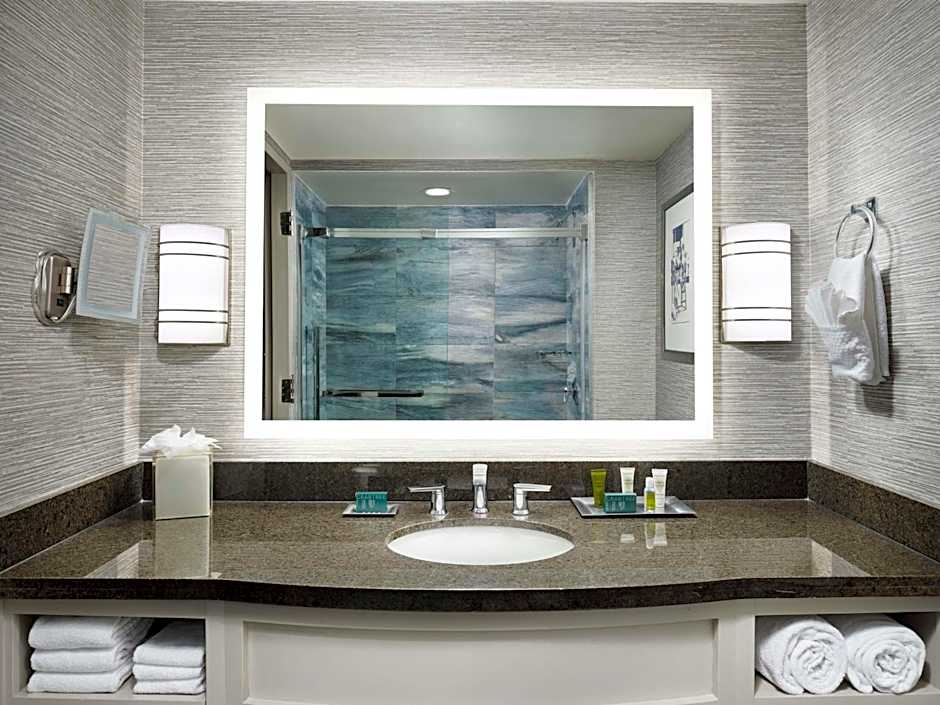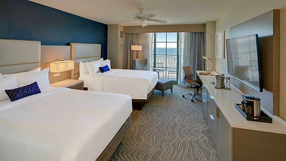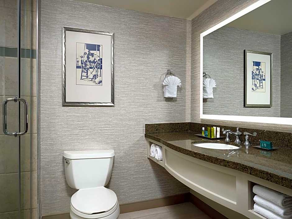 Accessible room features a bath tub and an ocean view.